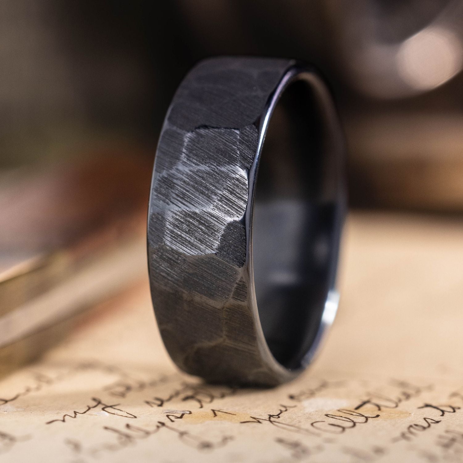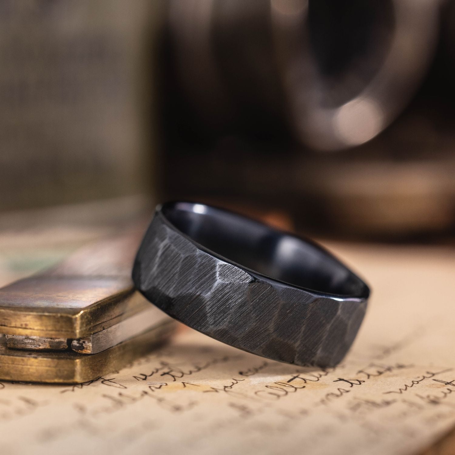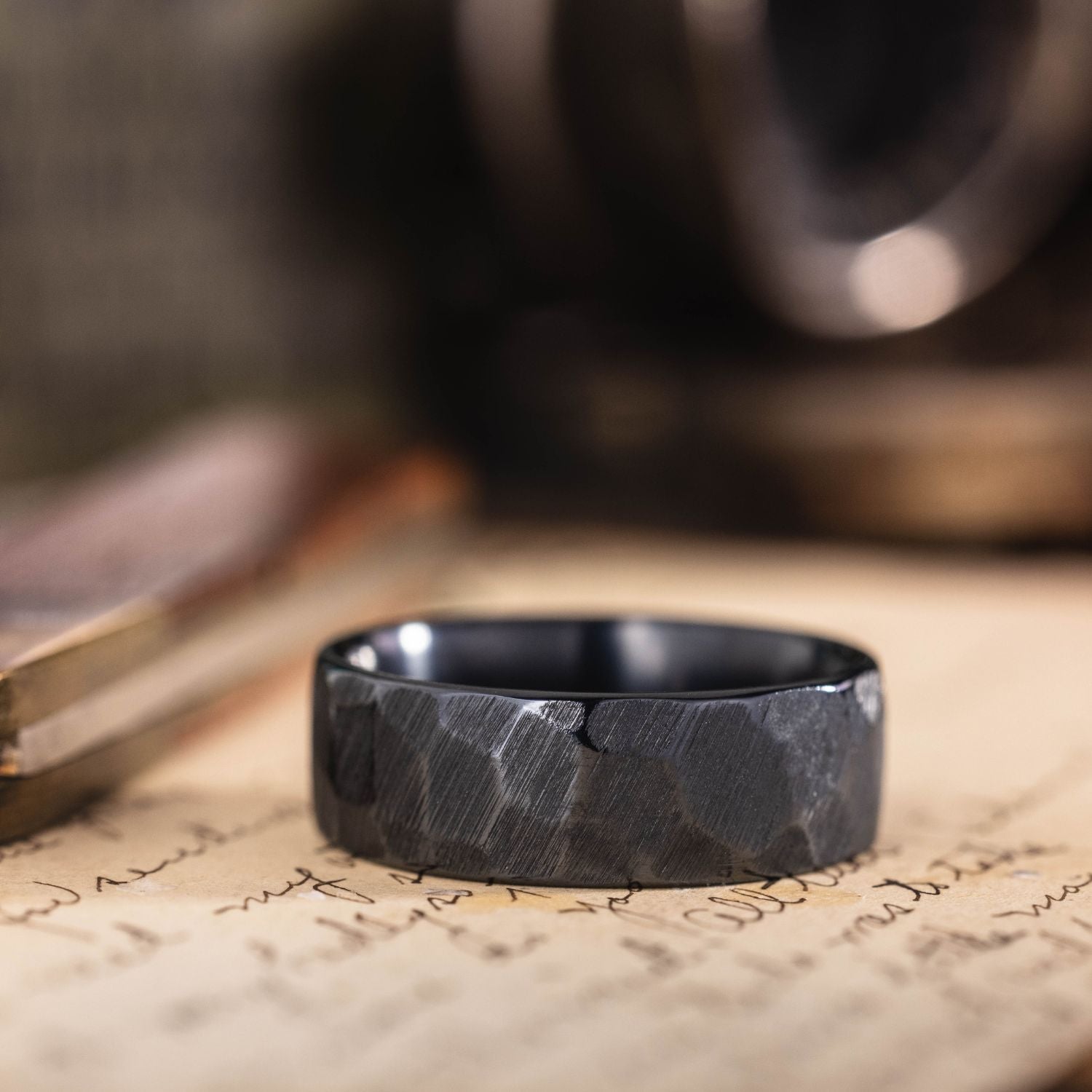 The Apollo Noir | Men's Hammered Black Titanium Wedding Band