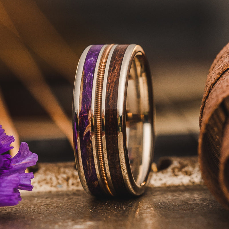 Select which style of ring you'd like to design. Each design is available in a 100% recycled gold, silver or titanium base. Customize the inlays with our curated selection of ethically sourced historic and unique materials or send in your very own.