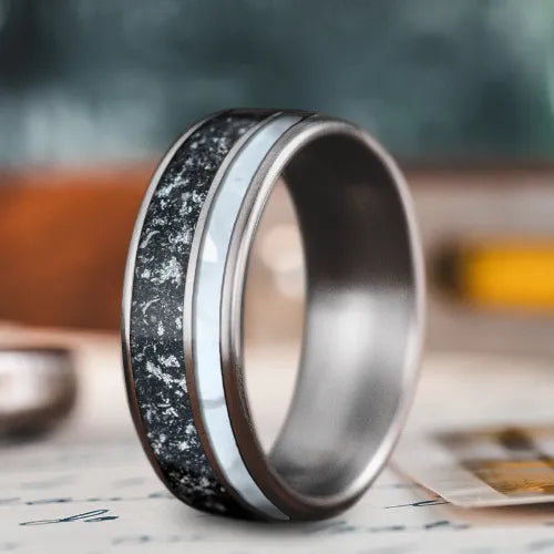 Choose Your Left Inlay - Unique & Popular Materials Meteorite Dust & Silver Flakes (150)