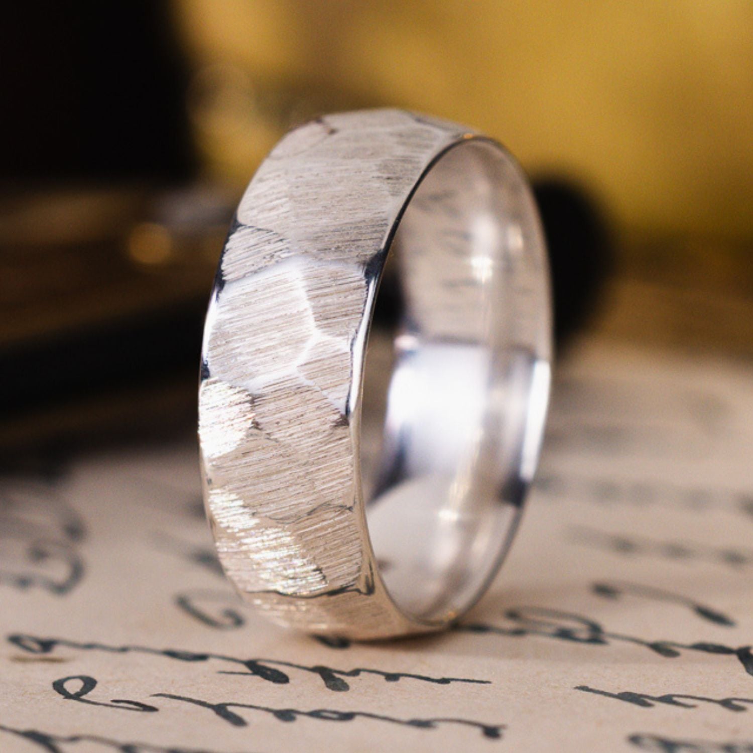 Introducing The Apollo – a modern sterling silver ring with a distinctive hammered texture, embodying strength and character. Crafted for the modern man who appreciates minimalist elegance and values the enduring craftsmanship of a classic ring.