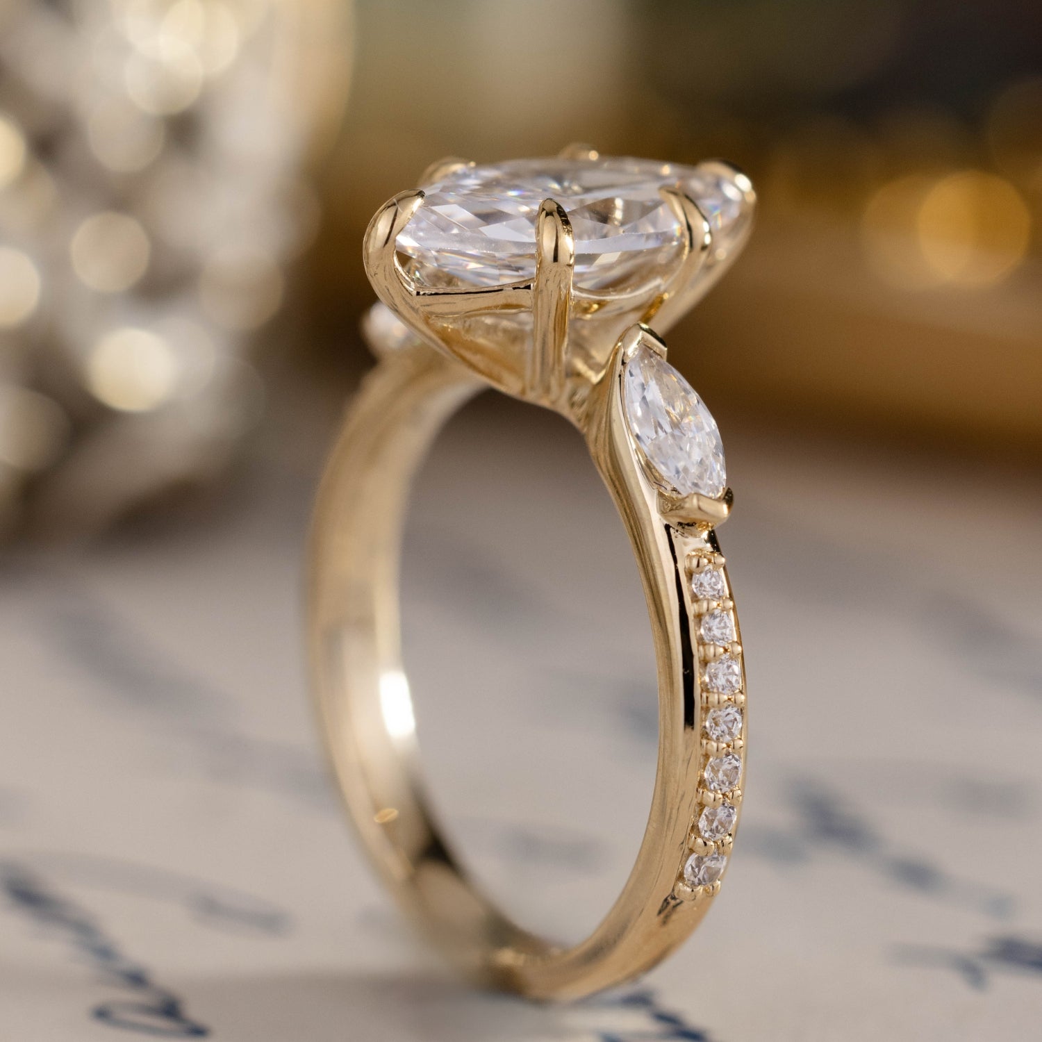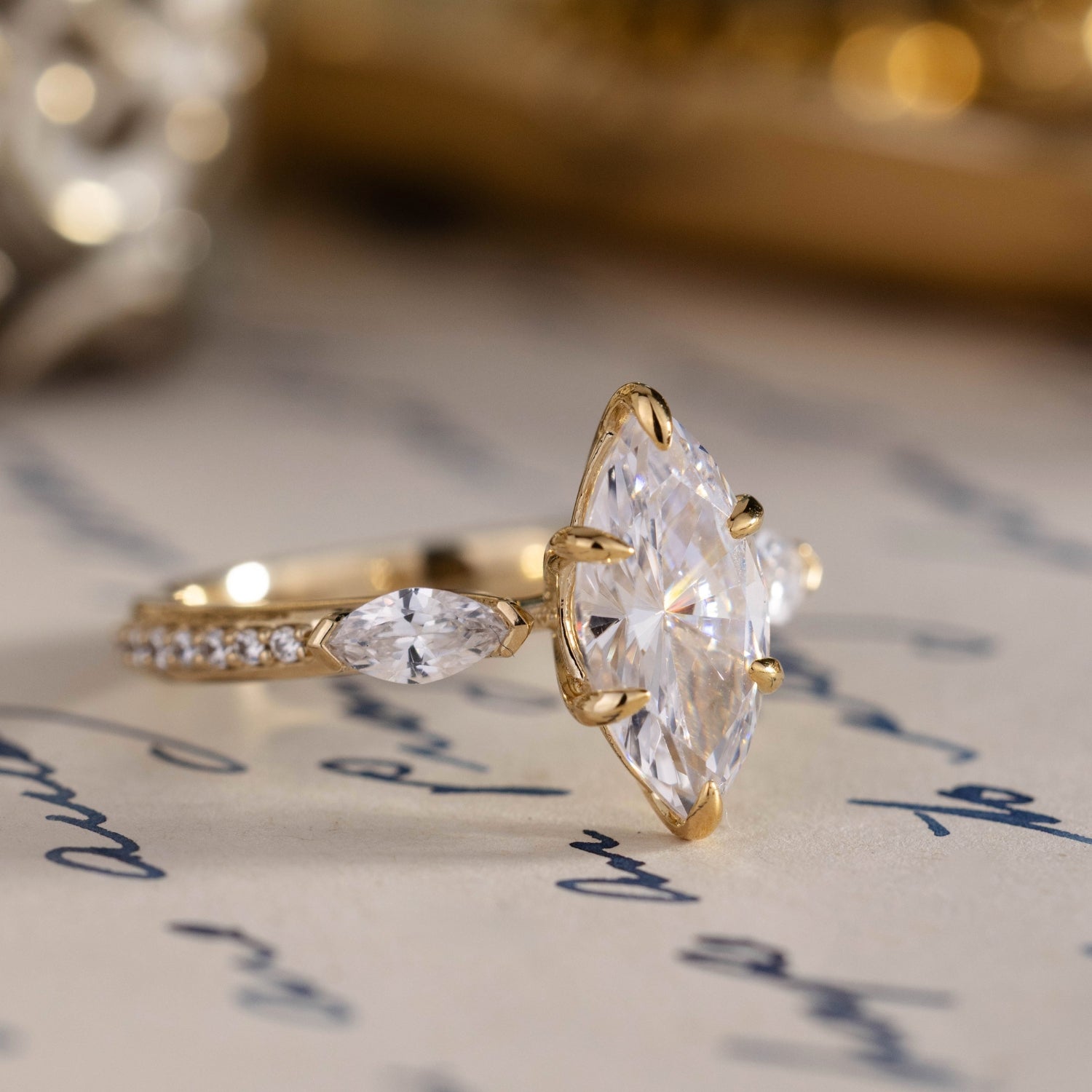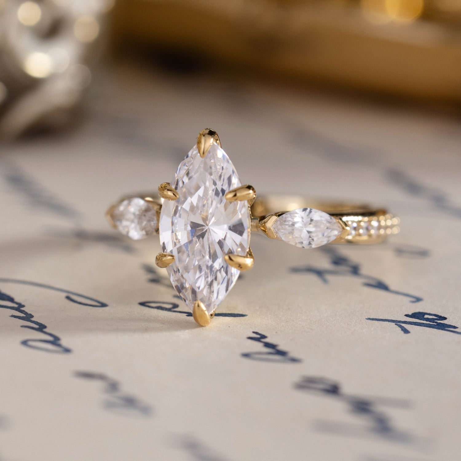 The Gwyndolyn - Marquise Diamond Engagement Ring with Marquise & Round-Shaped Diamond Accents