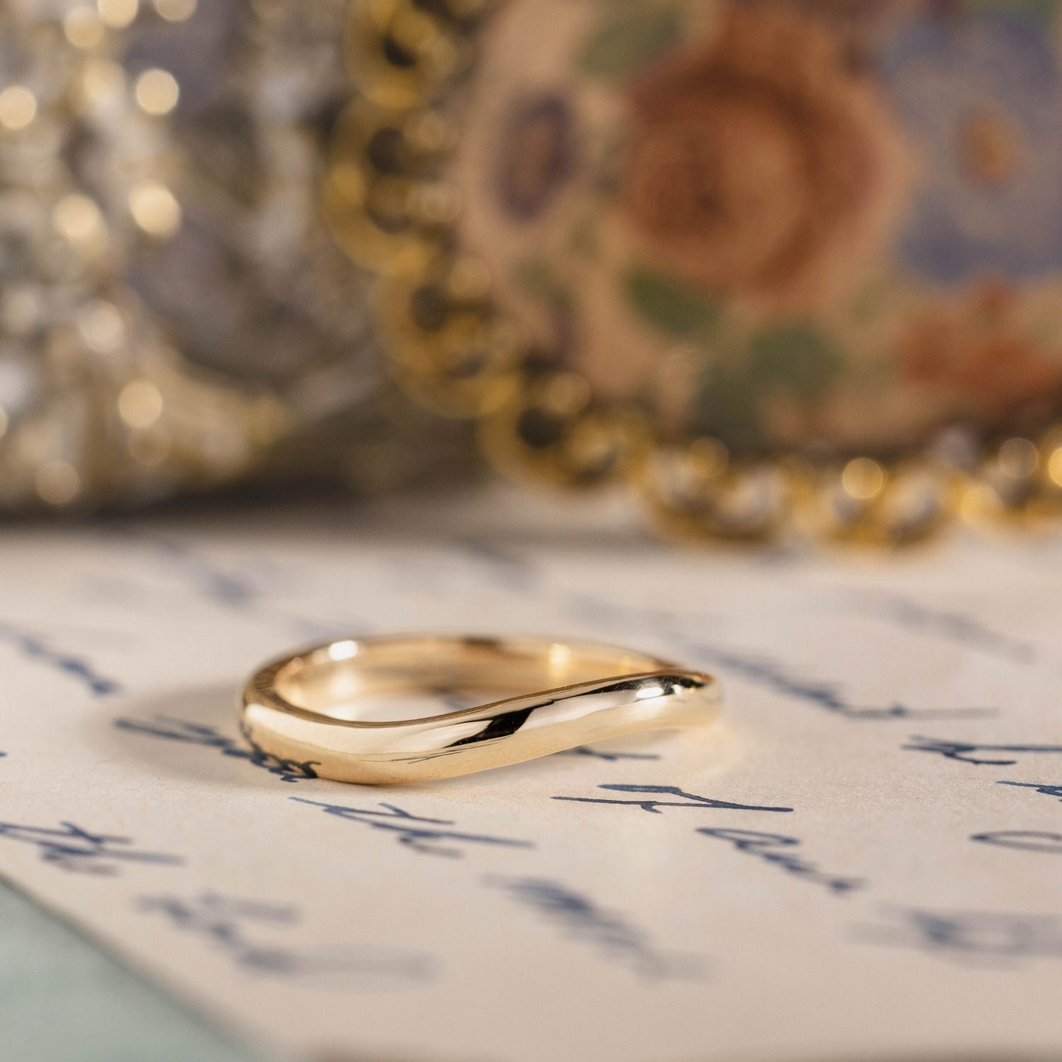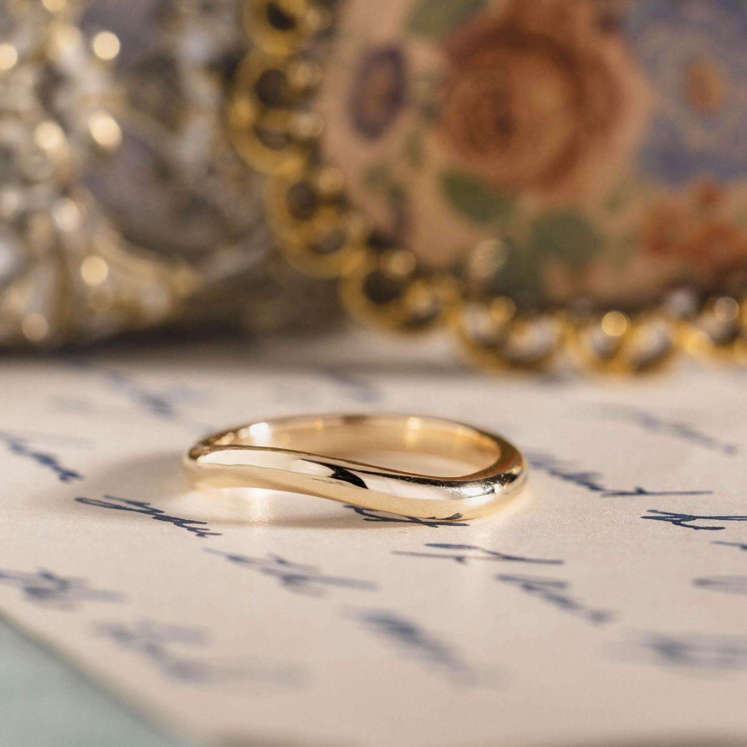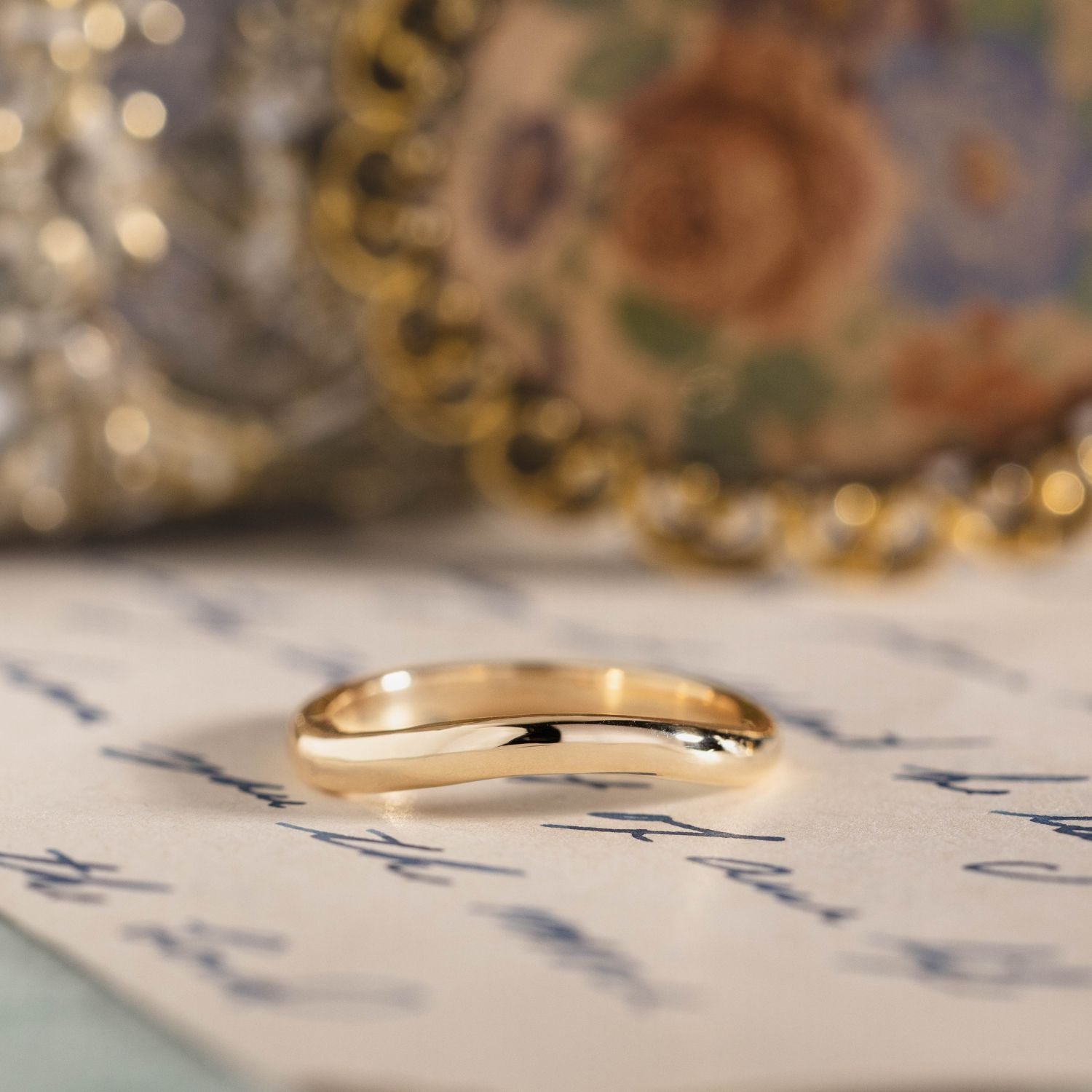 Introducing The June: a classic solid gold contour band that makes the perfect companion to your dazzling engagement ring. The minimalist design is perfect for the bride who adores simple elegance, and the gentle contour allows it to stack beautifully with other rings.